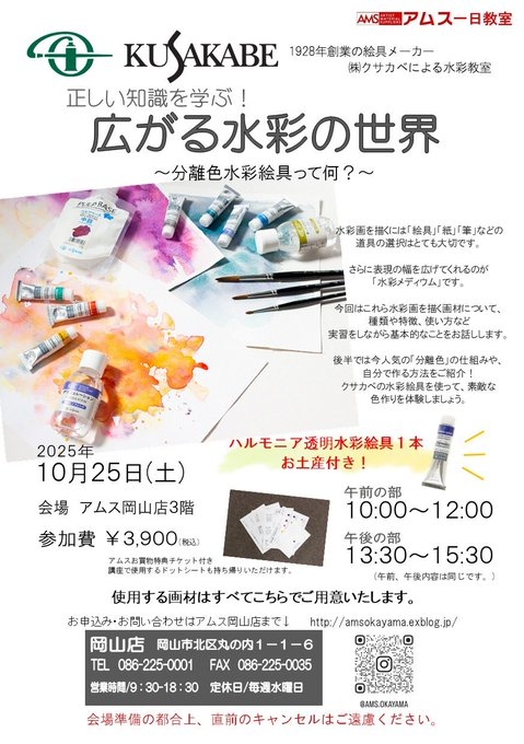 [画材イベント](株)クサカベによる 水彩教室開催のご案内