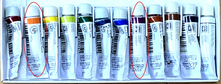 これまで4回にわたって混色の話をしてきたが、今回はその本丸の話である。第二話で書いた通り、油画やアクリル画と透明水彩では基本的な画面の作り方が異なるので、基本的に必要となる絵具数も異なっている。しかし、色と色を混ぜてどういう色ができるかという根本的な話は同じなので、ぜひ耳を傾けてもらいたい。皆さんが例えば12色セットの絵具を買ったとしよう。何度か絵を描いて、絵具箱にどんな色が残っているだろうか。おそらく最後まで残るのがオレンジと紫だろうと思う。皆さんも心当たりがあるはずだ。なぜそんなことになるのだろうか。